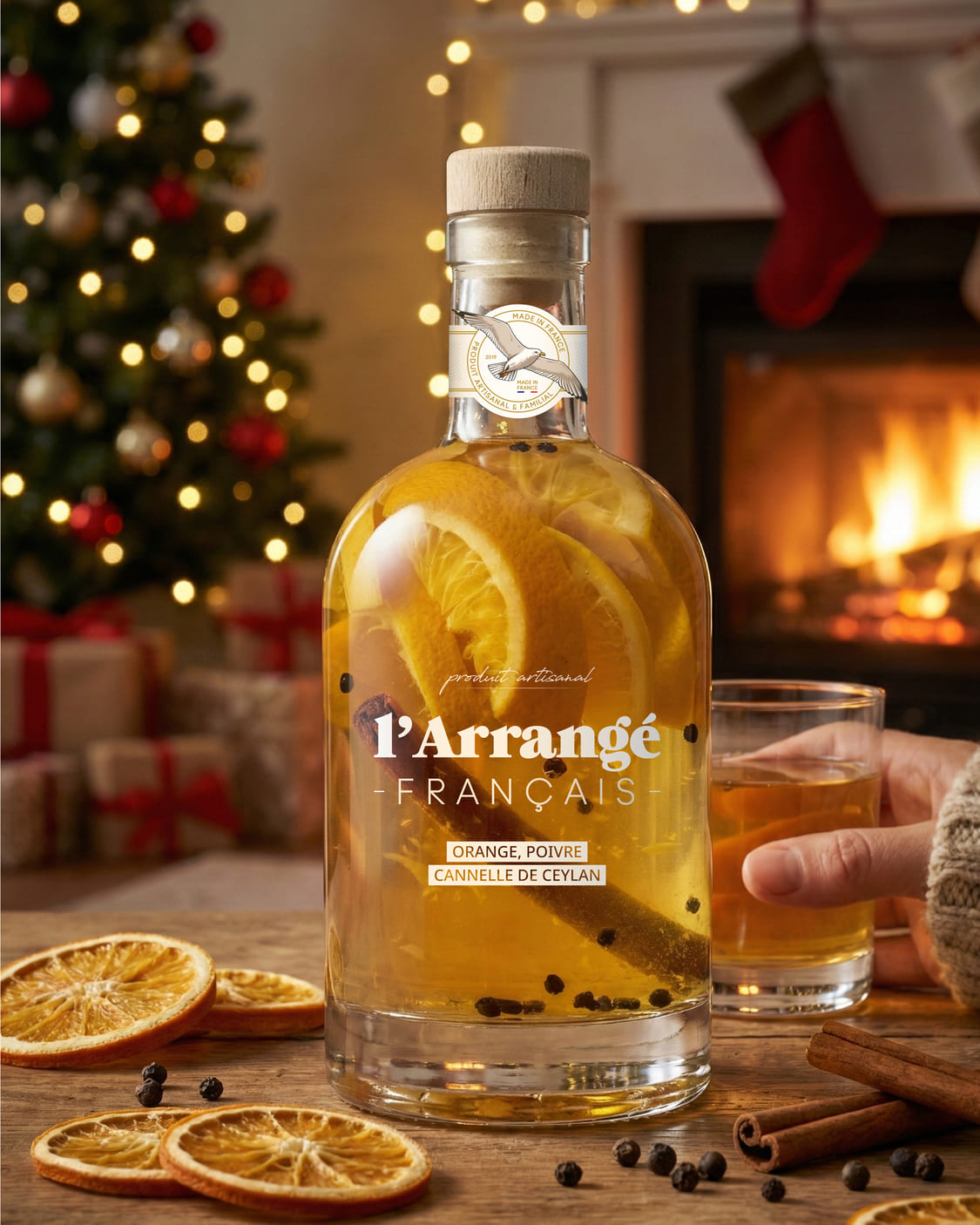 Blend de rhum de l'île de la Réunion et des Iles Françaises, Orange, Poivre, Cannelle de Ceylan, Sucre de canne.